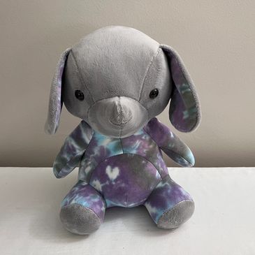 My most requested bear is made from clothing of a departed loved one. Another popular bear is a birth bear, made from a receiving blanket. I also make dogs, rabbits, moose, and elephants.